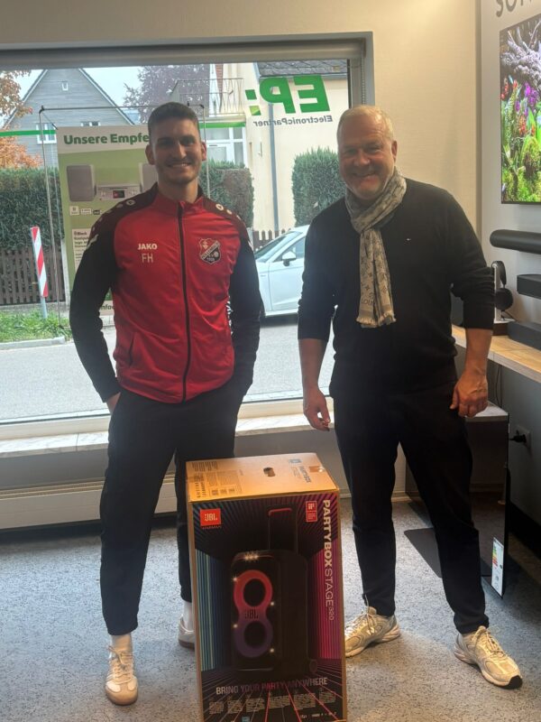 Nachdem die Soundbox unserer Fußballer zuletzt das zeitliche gesegnet hatte, ist die musikalische Unterhaltung in der Kabine jetzt wieder gesichert. Dank der großzügigen Spende einer JBL Soundbox durch die Firma @ephufsky in Aichach gibt’s ab sofort wieder ordentlich auf die Ohren. Der Kapitän unserer 1. Mannschaft, Florian Hartmann, nahm die Box mit Freude entgegen. Ein herzliches Dankeschön an Gerhard Hufsky von EP:Hufsky ElectronicPartner in Aichach für die Unterstützung.